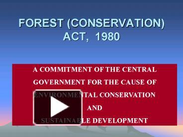 Forest conservation act 1980 is a unique piece of legislation and regulatory mechanism that reflects the collective will of the nation to protect its rich forests, biodiversity and natural heritage and resources... (1) this act may be called the forest (conservation) act 1980... Short title, extent and commencement: